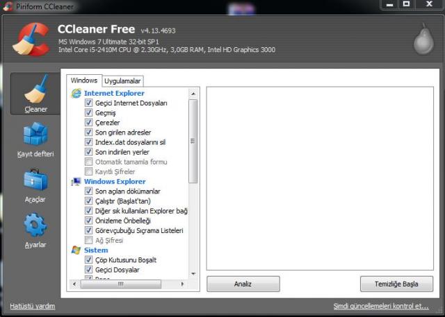 Bilgisayarınızdaki geçici internet dosyaları, geçmiş, çerezler, artık dosyalar, uygulamalar, kayıt defteri (registry) girdileri vb.. bölgeler...
