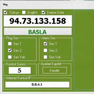 Ping Monitörü istediğiniz bir domain yada ip adresini sürekli kontrol etmenizi sağlar, Bunun yanında Ses ile uyarı verir. Sunucuya ulaşamadığınızda istediğiniz ses ile alarm verir. Kayıt "log" tutar daha sonra sunucuya ne zaman ulaşamadığınızı kontrol edebilirsiniz.